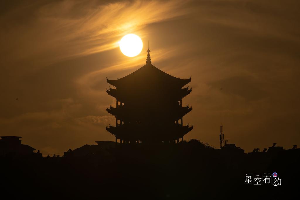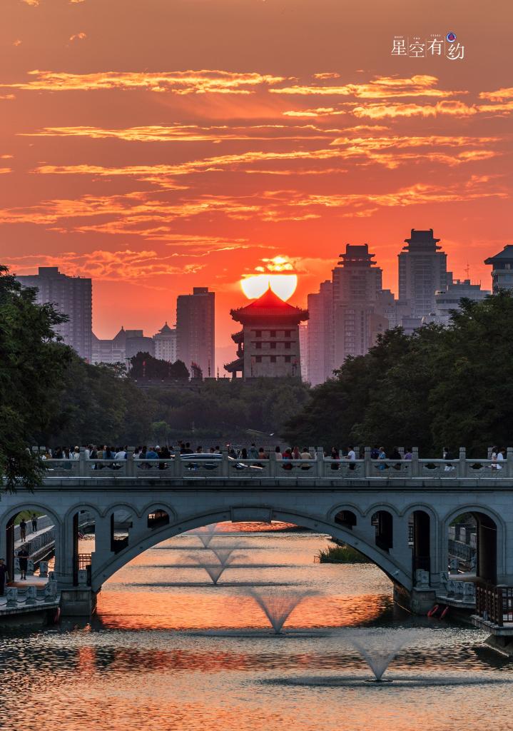 星空摄影师萧易寒9月22日在陕西西安含光门拍摄的旭日“悬日”。(星联CSVA供图)
