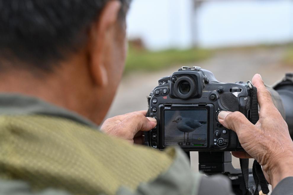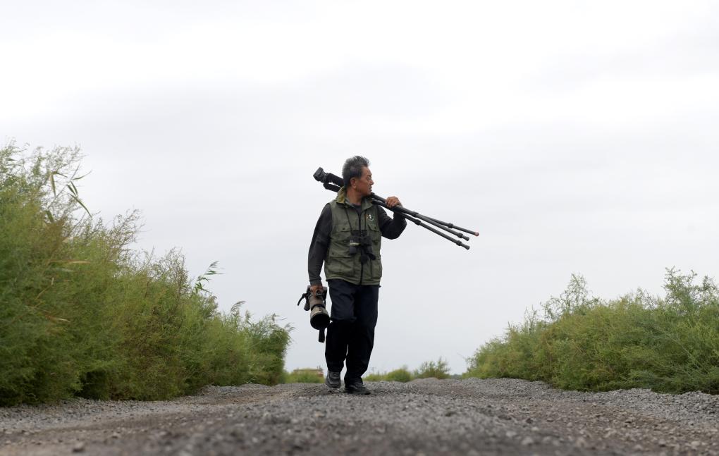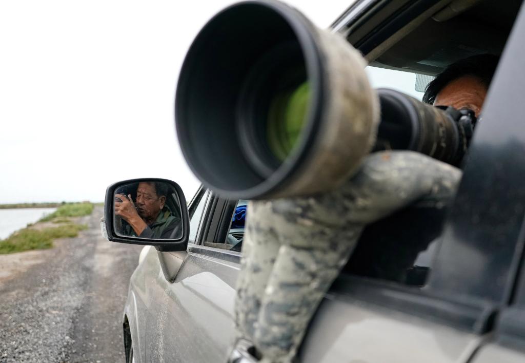 228国道旁,七里海潟湖湿地碧波荡漾,群鸟翱翔。载着相机、望远镜和三脚架,71岁的费明健开车行驶在路上,开启他每天例行的拍鸟护鸟之旅。