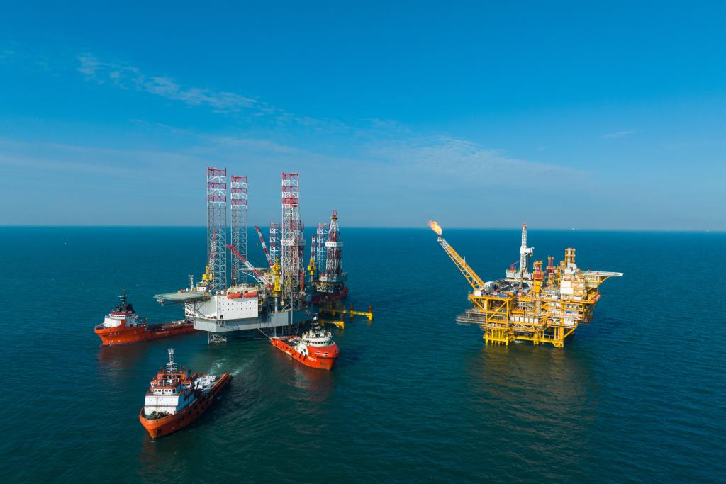 这是9月17日拍摄的郑建国所在的渤海油田曹妃甸6-4油田海上平台全景(无人机照片)。