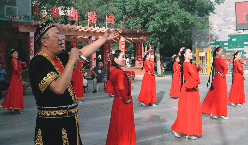 “团结是社区的名字,也是我们始终如一的信念、融入血脉的基因。”74岁的石榴籽乐队团长卡得尔·克衣木说,“民族团结之花常开长盛,我们也要一直唱下去。”