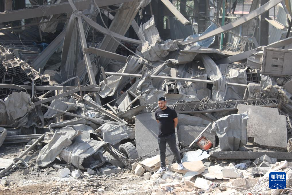 8月17日,在黎巴嫩奈拜提耶,一栋建筑在以色列空袭中被毁。新华社发(塔希尔·阿布·哈姆丹摄)