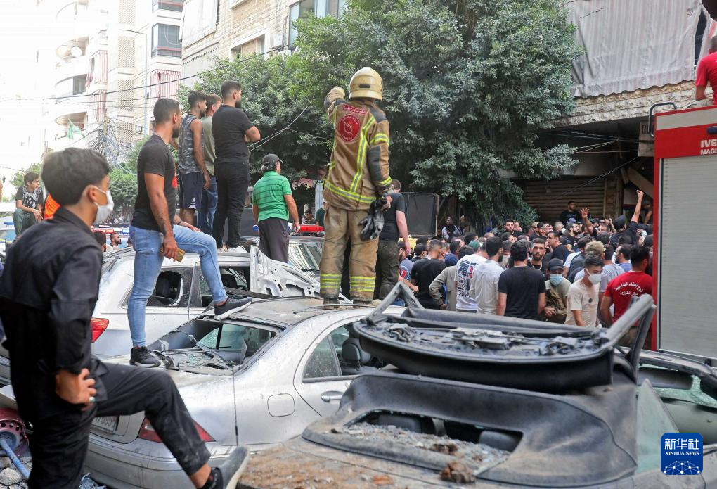 9月20日,在黎巴嫩贝鲁特南郊,民众聚集在袭击现场。新华社发(比拉尔·贾维希摄)