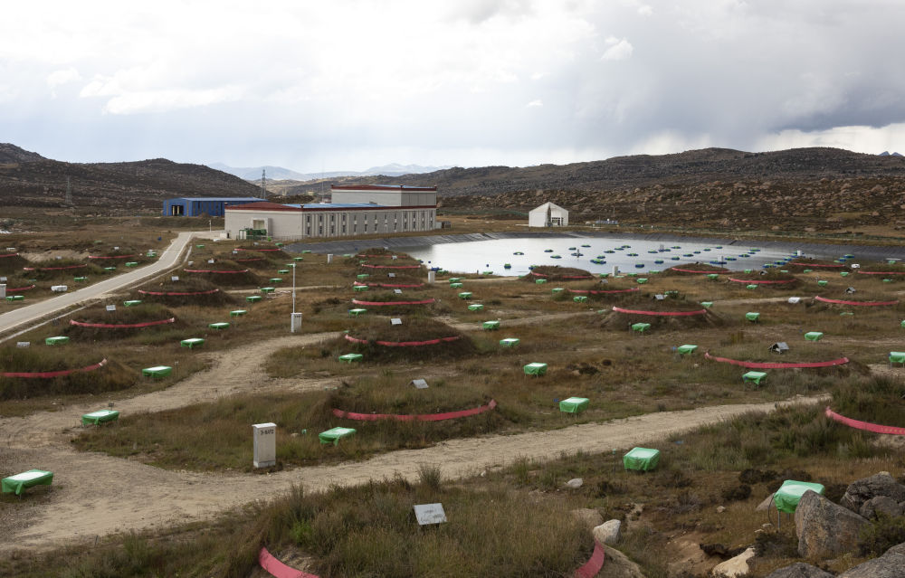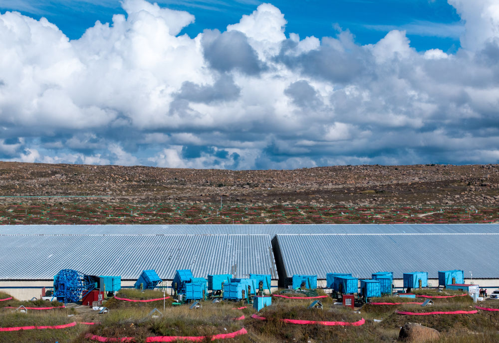 ↑这是9月20日拍摄的缪子探测器阵列和电磁粒子探测器阵列。新华社记者 高巍 摄