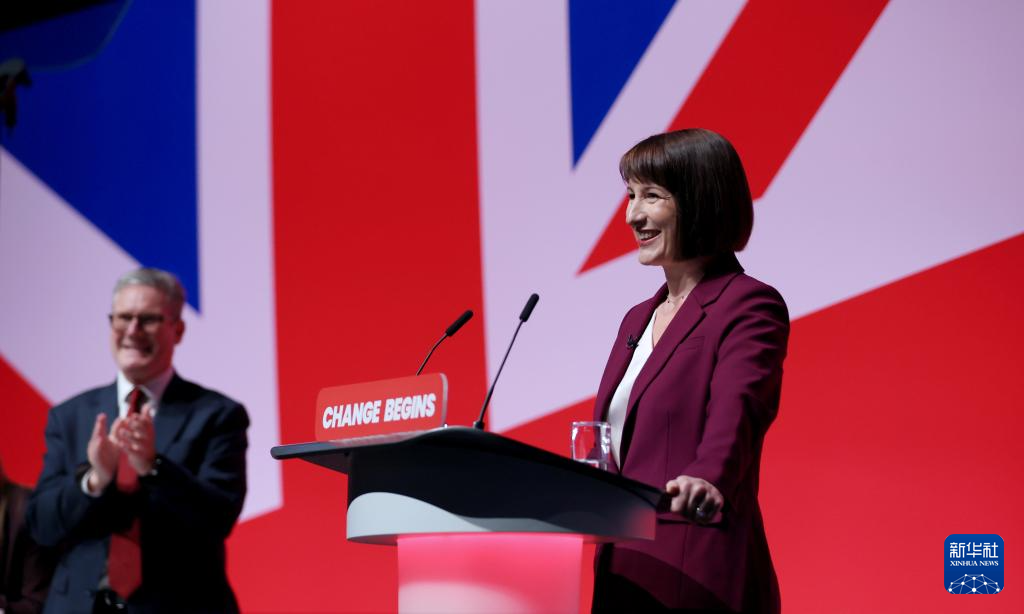 9月23日,在英国利物浦,英国财政大臣里夫斯在工党年会上发表演说。新华社记者 李颖 摄
