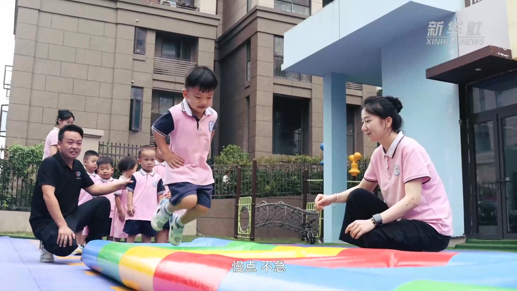 暑气渐消,秋高气爽。在湖南省长沙市天心区一个小区配套的托儿所内,专业的体育老师正在带领幼儿们开展充满趣味性,同时适合幼儿体能发展的游戏活动。
