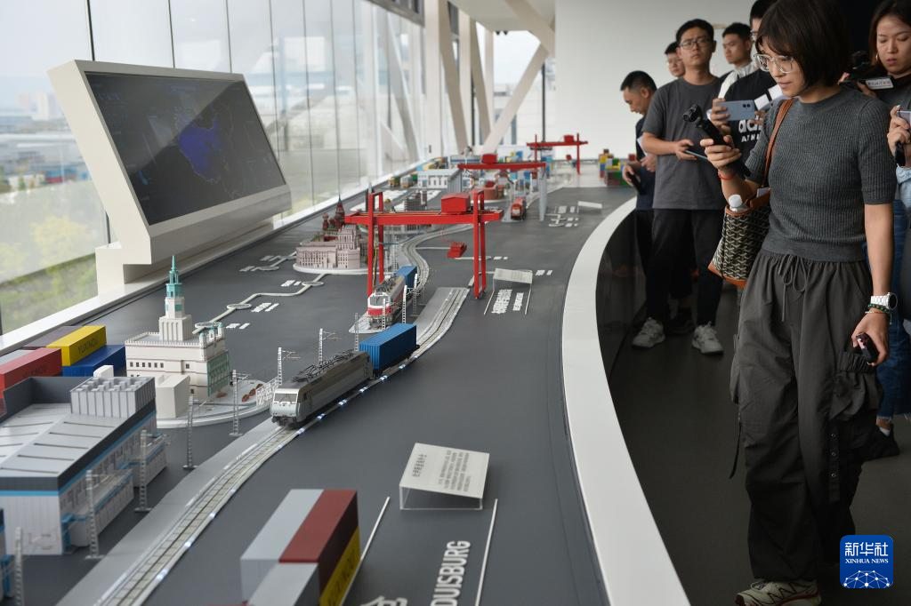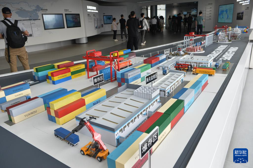9月23日,观众在重庆国际物流枢纽园区里的内陆国际物流枢纽展示中心参观。新华社记者 肖潇 摄