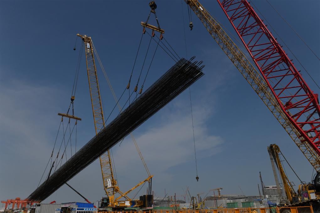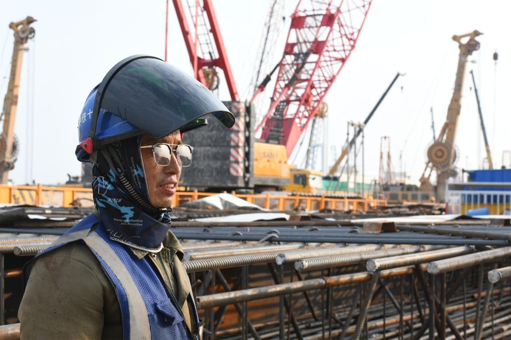 胡建国在粤港澳大湾区重点基础设施项目南珠中城际铁路的建设工地上(9月12日摄)。