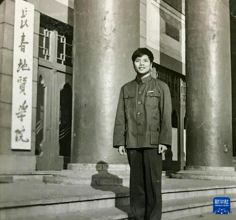 黄大年在长春地质学院大门前的留影(资料照片)。 新华社发