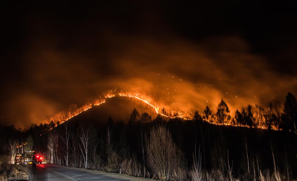 被高纬度森林极端大火照亮的夜空(资料图片)。新华社发