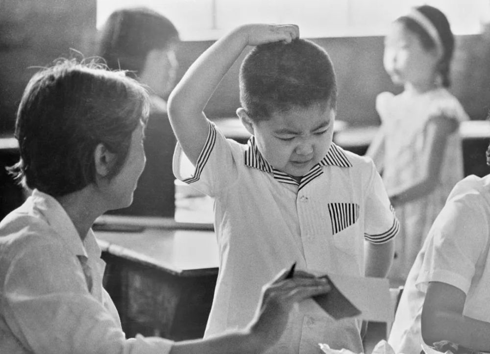 1981年7月,在北京崇文区光明小学,新生在参加招生入学考试。新华社记者 黄景达 摄