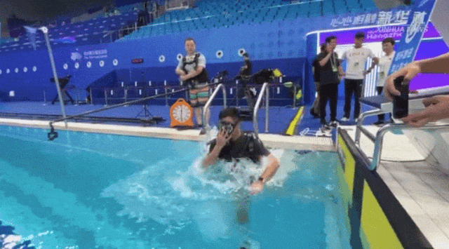 北京冬奥会期间,在张家口赛区,新华社记者江宏景趴在雪地上拍摄比赛。