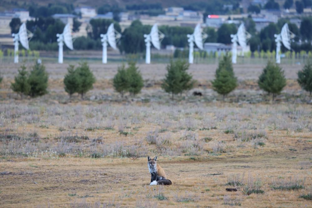 这是9月18日拍摄的“千眼天珠”抛物面天线和狐狸。新华社记者 金立旺 摄