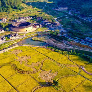 古木参天,流水潺潺。在位于福建漳州华安县仙都镇的大地村,日光揉碎在九龙江温水溪的碧波里,一湾清水流过田园,绕过土楼,如同蜿蜒的绸带勾勒出这片土地的秀美。