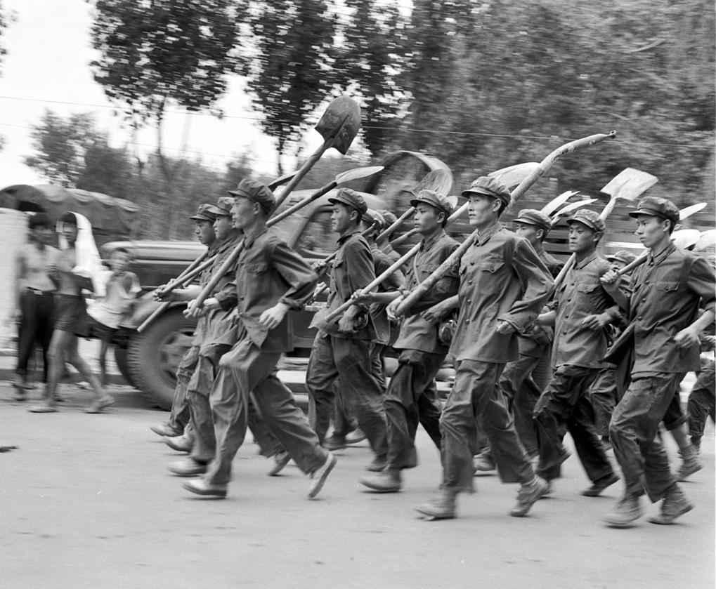 1976年夏,解放军指战员前往唐山地震灾区参加救灾。新华社记者 武清月 摄