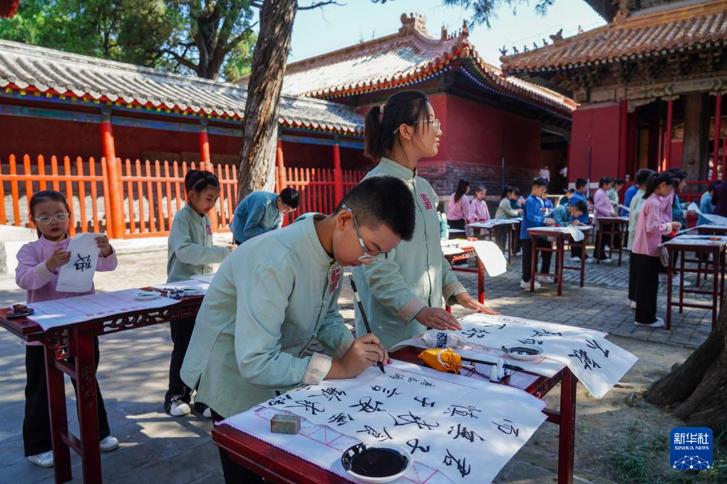 9月28日,在2024甲辰年公祭孔子大典上,学生在曲阜孔庙进行书法创作。新华社记者 朱峥 摄