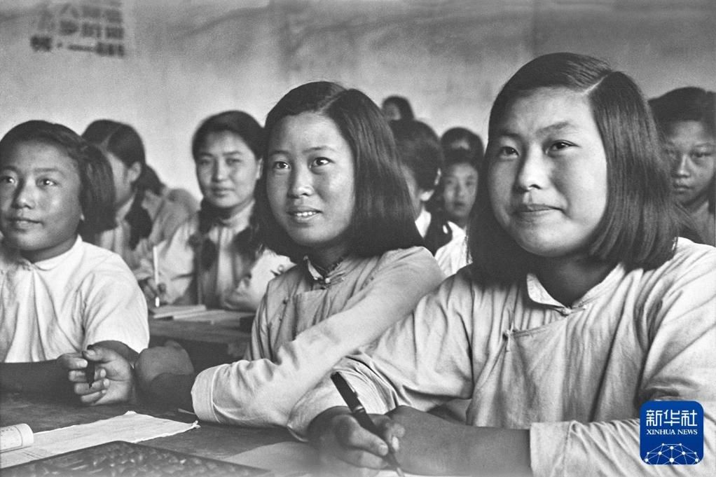 1950年7月,河北唐山滦南县的妇女在人民文化馆学习文化。20世纪50年代,斜襟棉布上衣是中国农村女性常穿的服装。新华社记者 王纯德 摄