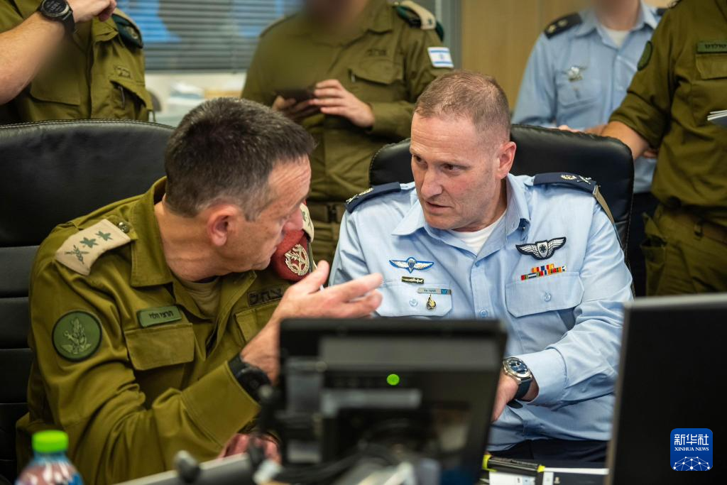 9月27日,在以军空袭黎巴嫩真主党总部期间,以色列国防军总参谋长哈莱维(左)在以空军一处基地内。新华社发(以色列国防部供图)