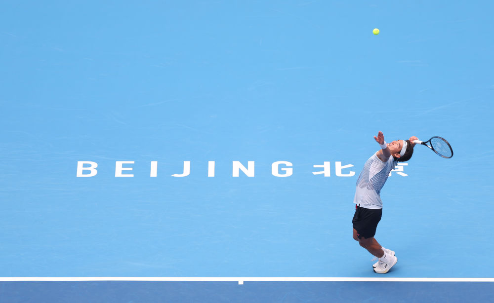 9月27日,布云朝克特在比赛中发球。新华社记者 白雪飞 摄