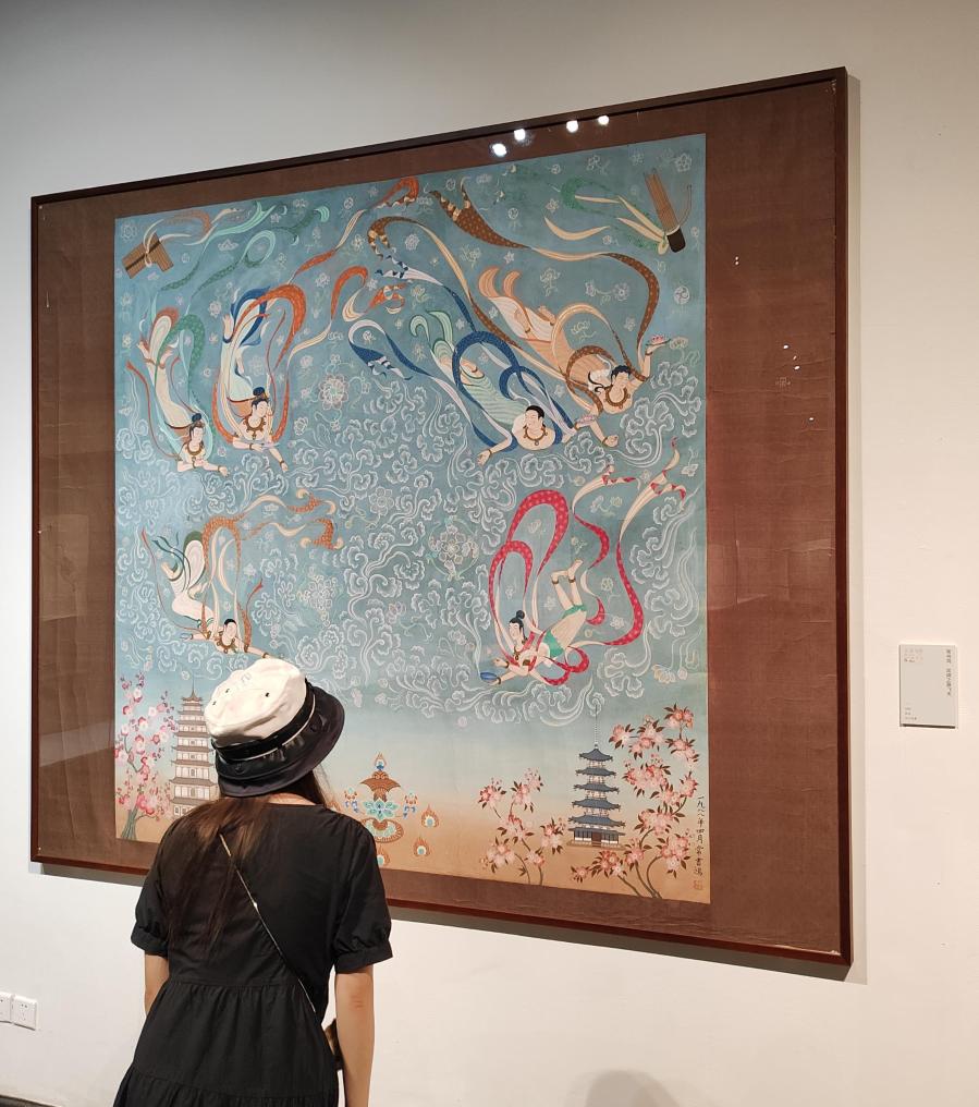 观众在欣赏常书鸿临摹的莫高窟《飞天图》。新华社记者 冯源 摄
