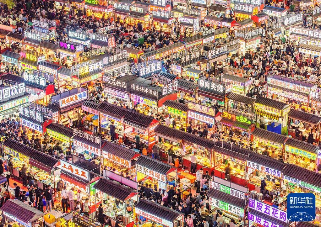 2024年4月21日,人们在河北石家庄正定县小商品夜市品尝美食。新华社发(武志伟 摄)