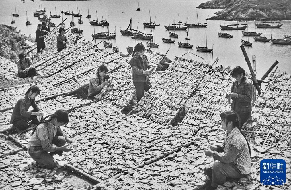 1965年,浙江温岭县墨鱼丰收。县水产公司工人在石塘渔区加工墨鱼,准备供应市场。新华社记者 陈新 摄