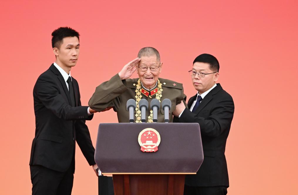 颁授仪式结束后,黄宗德等从金色大厅侧面退场。此时,现场工作人员和观礼群众列队一侧,鼓掌欢送共和国的功臣们离开仪式现场。