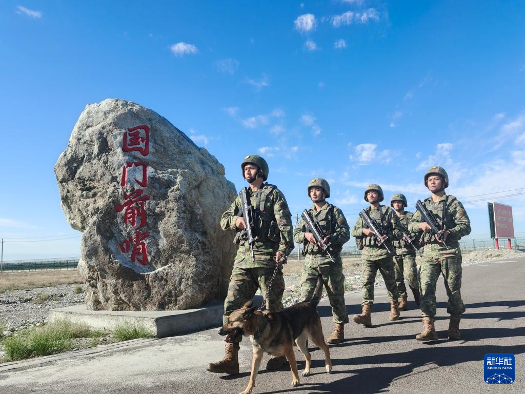9月30日,霍尔果斯边防连国门前哨班官兵踏上巡逻路。新华社发(周志天摄)
