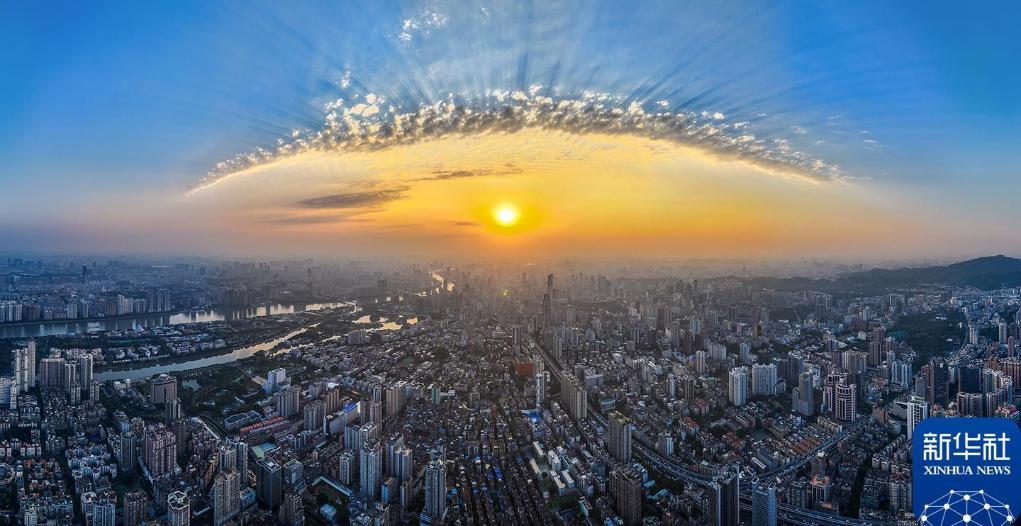点评 巧用落日和光线在云端散射形成的眼睛形状,表现现代化都市美景,新颖别致的视觉元素增添浪漫气息,引发观者想象。