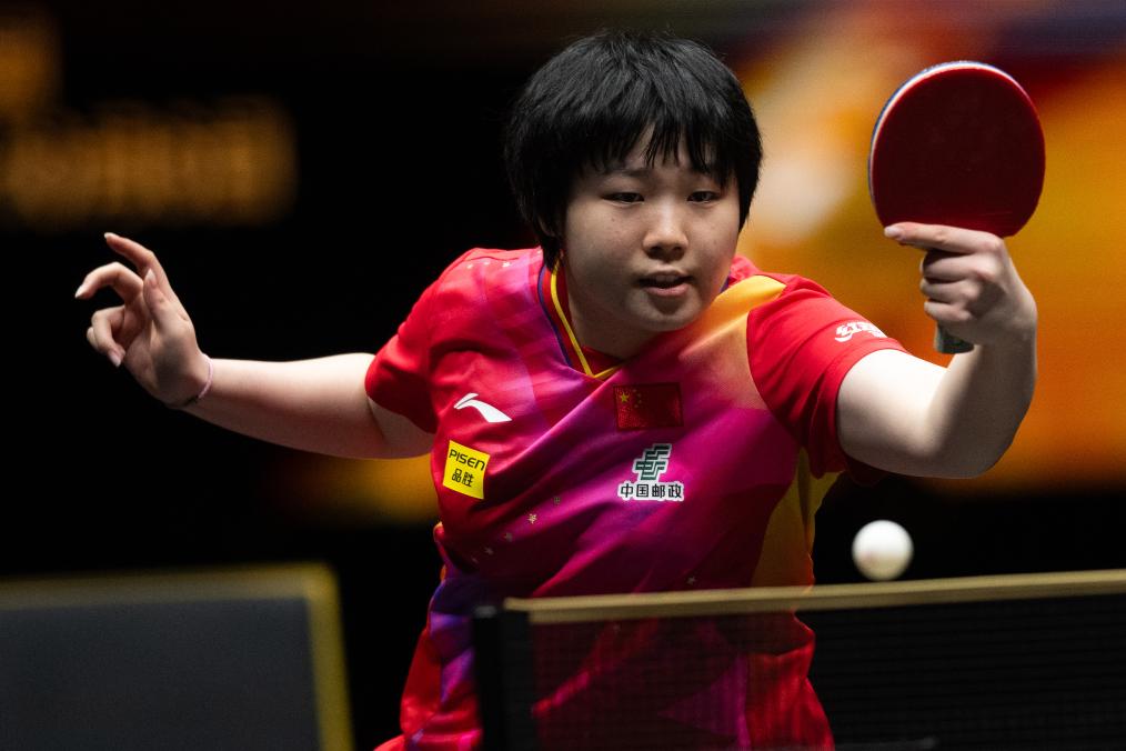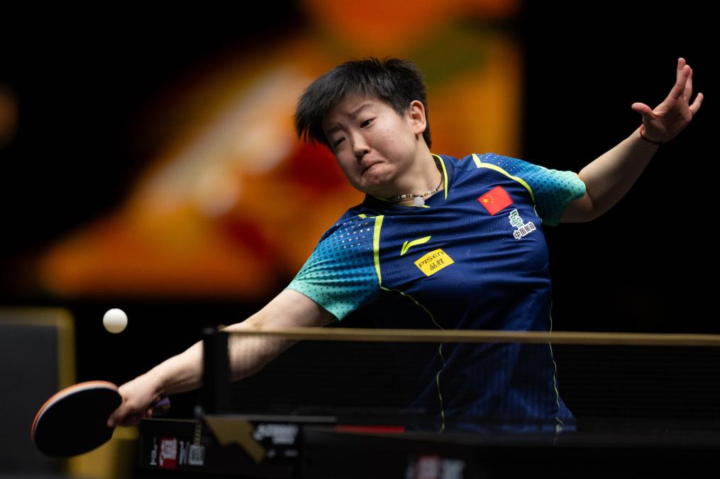 10月1日,孙颖莎在比赛中回球。新华社记者 肖艺九 摄