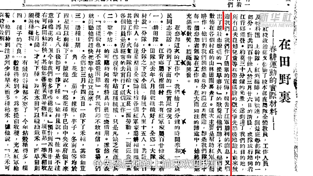 铅字里有鱼水情深。当年,《红色中华》报用了大量笔墨倾情讴歌苏区干部群众站在一起、想在一起、干在一起的深厚情感。一篇介绍苏区组织干部帮助农民春耕的报道这样记载:“所有农夫农妇儿童等都带着满脸的微笑,争先恐后地跑上前来欢迎我们。”