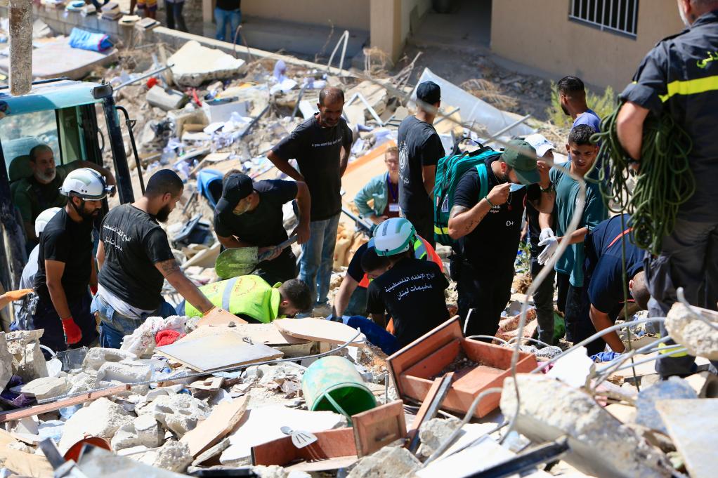 9月30日,在黎巴嫩艾因代尔布,救援人员在以色列空袭现场工作。新华社发(阿里·哈希绍摄)