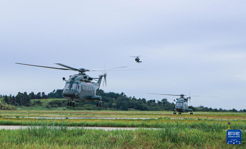 9月30日,武警第二机动总队某支队组织演练,多架直升机迅速起飞。