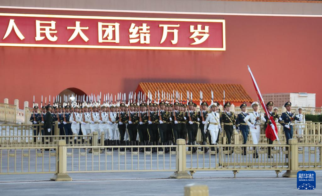 10月1日,迎着第一缕朝霞,国旗护卫队步履铿锵走向天安门广场。