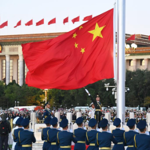 10月1日清晨,隆重的升国旗仪式在北京天安门广场举行,庆祝中华人民共和国成立75周年。新华社记者 任超 摄