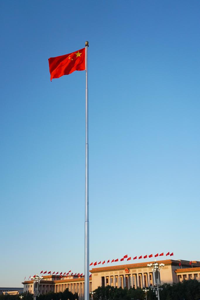 10月1日清晨,隆重的升国旗仪式在北京天安门广场举行,庆祝中华人民共和国成立75周年。 新华社记者 陈钟昊 摄