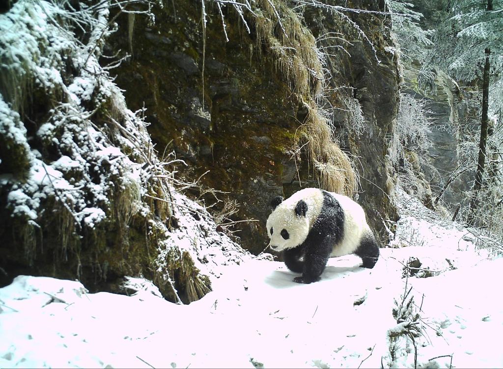 2021年3月1日在大熊猫国家公园四川绵阳北川小寨子沟片区用红外相机拍摄的野生大熊猫。新华社发