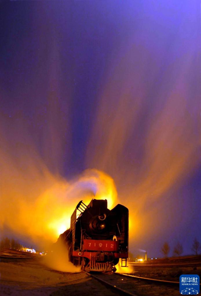 2005年12月6日,一台“前进”型蒸汽机车在内蒙古集通铁路上行驶。新华社记者 张领 摄