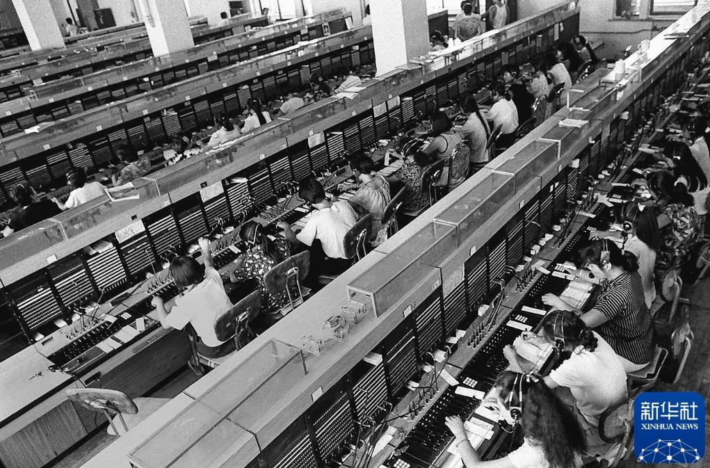 1986年5月,河南郑州邮电局人工电话交换机工作大厅的接线员在紧张工作。新华社记者 王颂 摄
