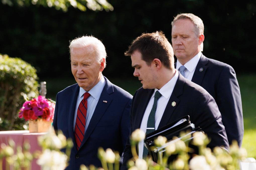 这是5月13日在美国华盛顿白宫拍摄的美国总统拜登(左一)。新华社发(亚伦摄)