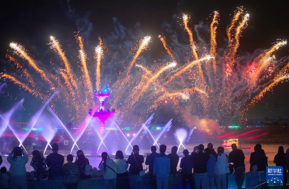 这是10月1日拍摄的2024年江西省南昌市国庆烟花晚会。