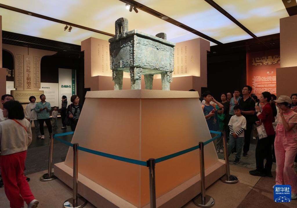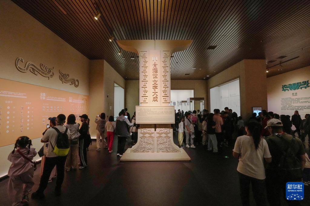 10月1日,游客在河南省安阳市殷墟博物馆新馆参观。