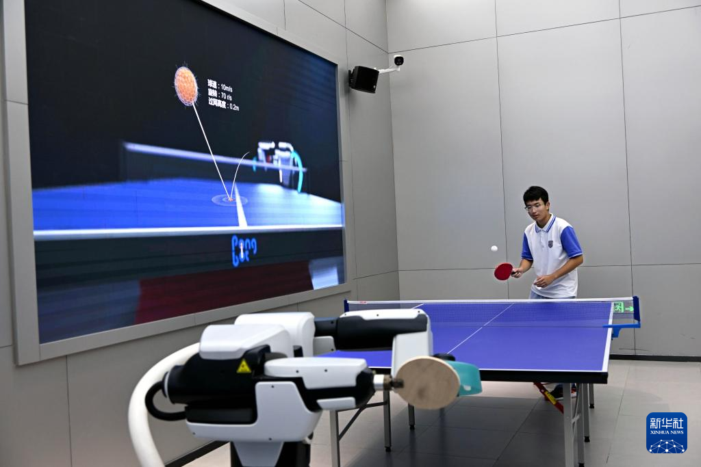 10月1日,中学生在山东青岛人工智能国际客厅参加研学活动。