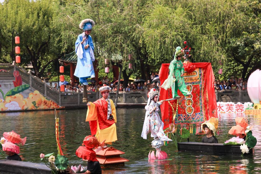 齐天大圣孙悟空在水上翻腾飞跃、荷花仙子在水面翩跹起舞、凤艇开道重现“天后出巡”等精彩表演吸引大量游客前来观看。假日期间,在广州宝墨园,非遗表演与园林古建、灵动湖水相互融合,宛如一幅天人合一的“国风”画卷缓缓打开,为观众带来沉浸式、全感官的视觉盛宴。