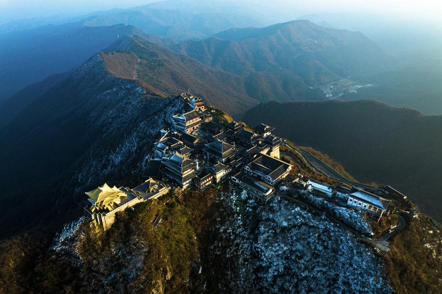 2023年12月12日拍摄的湖北省随州市大洪山风景名胜区(无人机照片)。新华社记者 肖艺九 摄