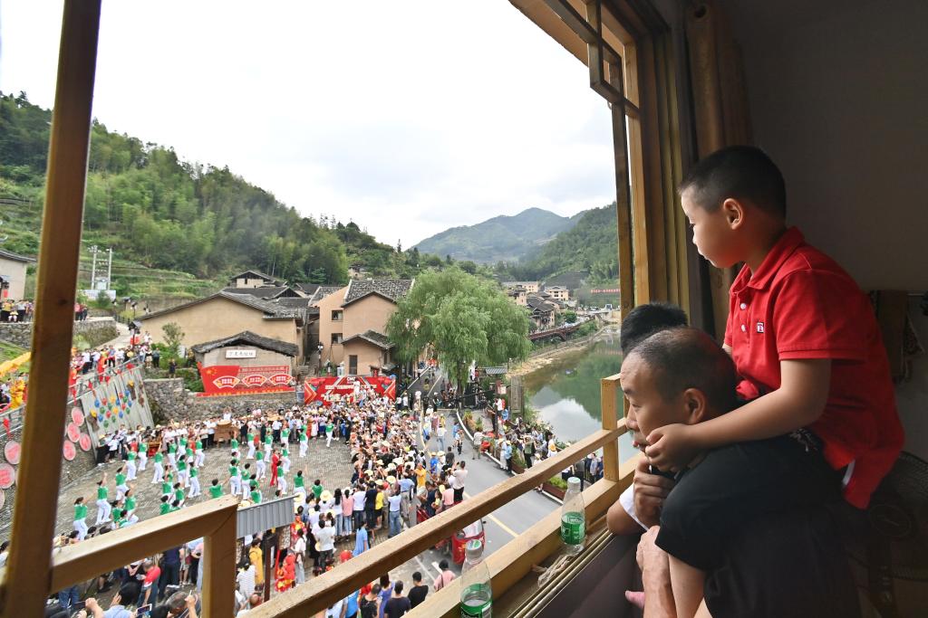 2020年8月5日,福建省宁德市寿宁县下党乡群众在观看表演。新华社记者 姜克红 摄