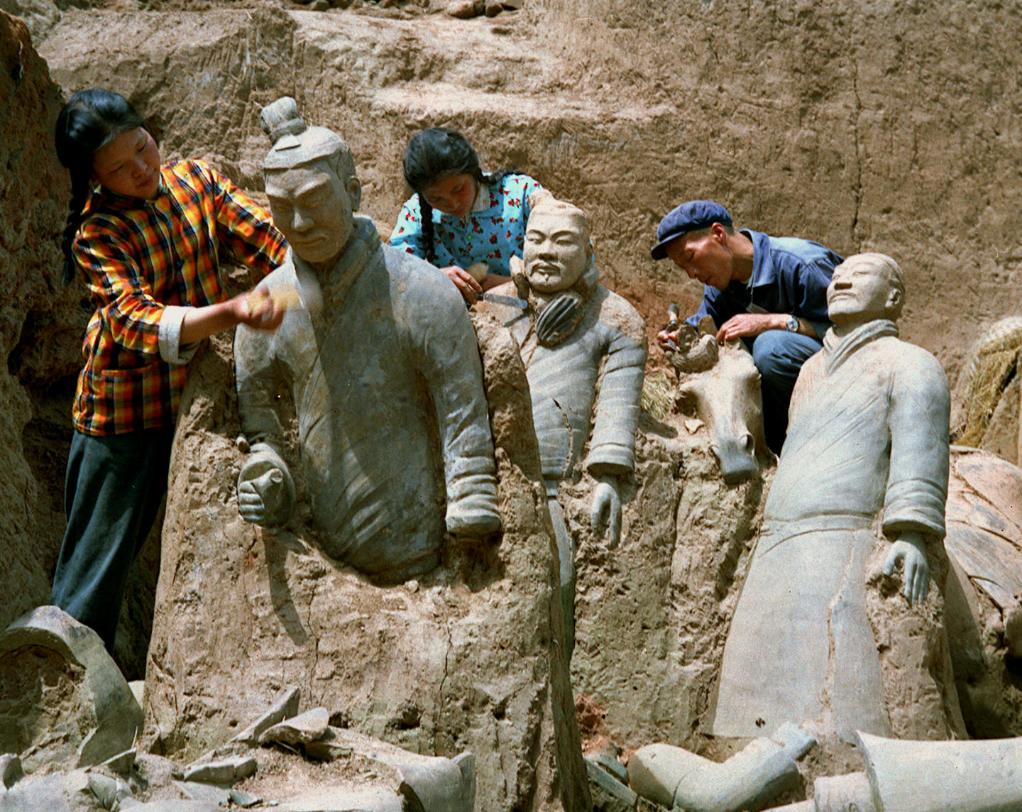 1975年9月,秦始皇陵东侧出土大批陶兵、陶马珍贵文物。新华社记者 安克仁 摄