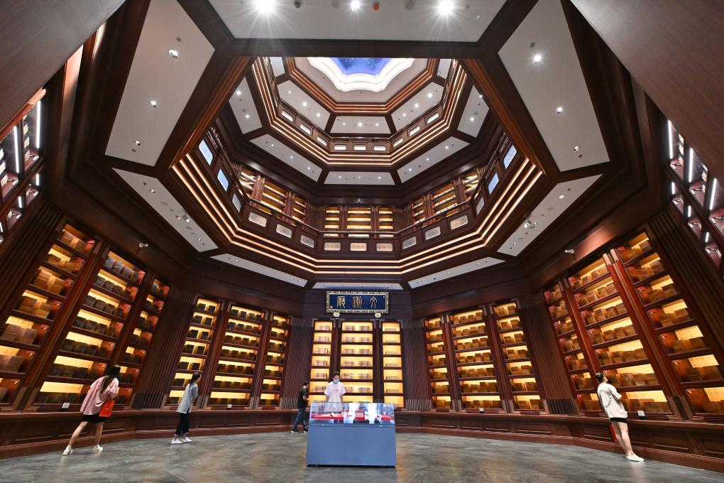 2022年7月30日,观众在位于北京的中国国家版本馆中央总馆文瀚厅内参观。新华社记者 李鑫 摄