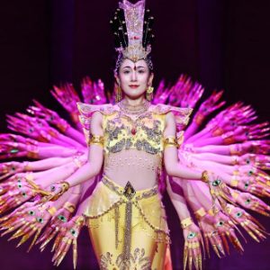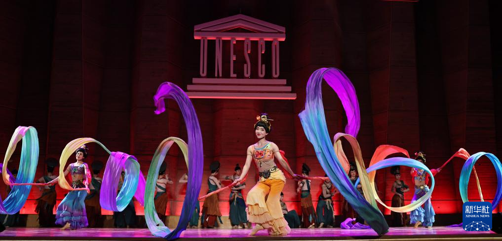 9月24日,在位于法国巴黎的联合国教科文组织总部,中国残疾人艺术团的演员在国庆75周年招待会上表演。新华社记者 高静 摄