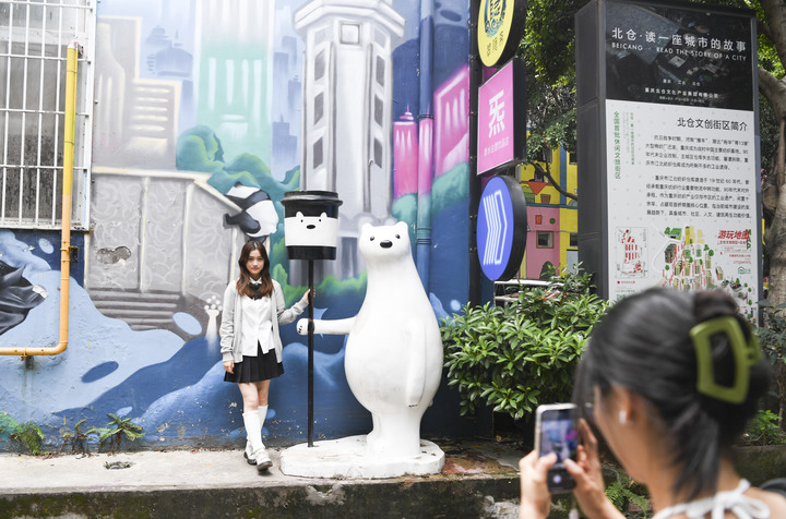 图为游客在重庆江北区北仓文创街区拍照。新华社记者王全超 摄