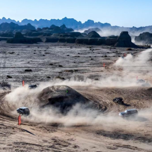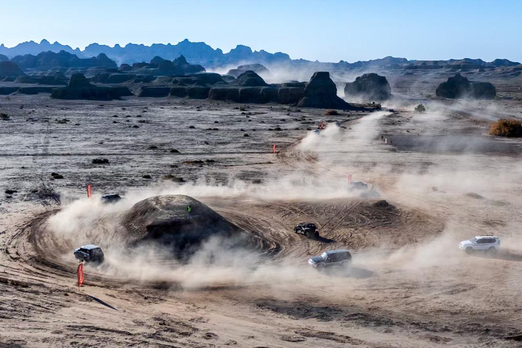 10月5日,达喀尔英雄挑战赛世界魔鬼城计时排位活动在克拉玛依市举办。闵勇 摄